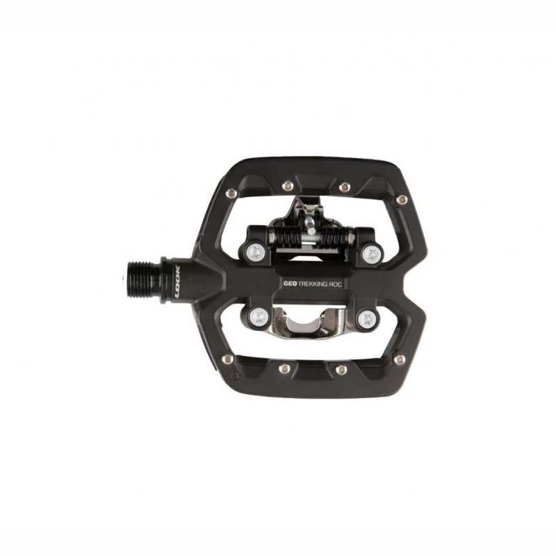 Pédales plates ou pédales automatiques ? Cette question ne se pose plus avec la GEO TREKKING ROC. Cette pédale composée d’aluminium à la robustesse impressionnante embarque une face automatique compatible SPD et un autre côté plat, principalement destiné à un usage « off-road », grâce à la présence des 8 picots qui permettent une accroche extrême. Son design concave lui confère une large surface d’appui de 84 mm pour un poids léger dépassant à peine les 200 grammes.