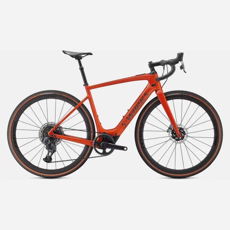 Comme tous nos vélos S-Works, le S-Works Turbo Creo SL EVO est doté de notre cadre en carbone Fact 11r et d’un montage aux petits oignons. Vous disposez de la nouvelle suspension Future Shock 2.0. Pour l’équipement, nous avons confié la transmission et le freinage au groupe Sram Red eTap AXS en version Mulet grâce à un dérailleur arrière Sram XX1 Eagle et à une cassette 10-50 pour une plage de braquet optimale. Les roues en carbone Roval Terra CLX EVO reçoivent des pneus Pathfinder Pro 2Bliss de 38 mm pour rouler longtemps et sans encombre. Nous finalisons le montage avec une potence S-Works Future Stem et un cintre en carbone S-Works Hover. Quant à la selle, c’est la très demandée et très confortable Body Geometry Power Expert. Ce vélo est livré d’origine avec une batterie auxiliaire, parce que vous n’aurez plus jamais envie d’arrêter de rouler avec ce vélo.